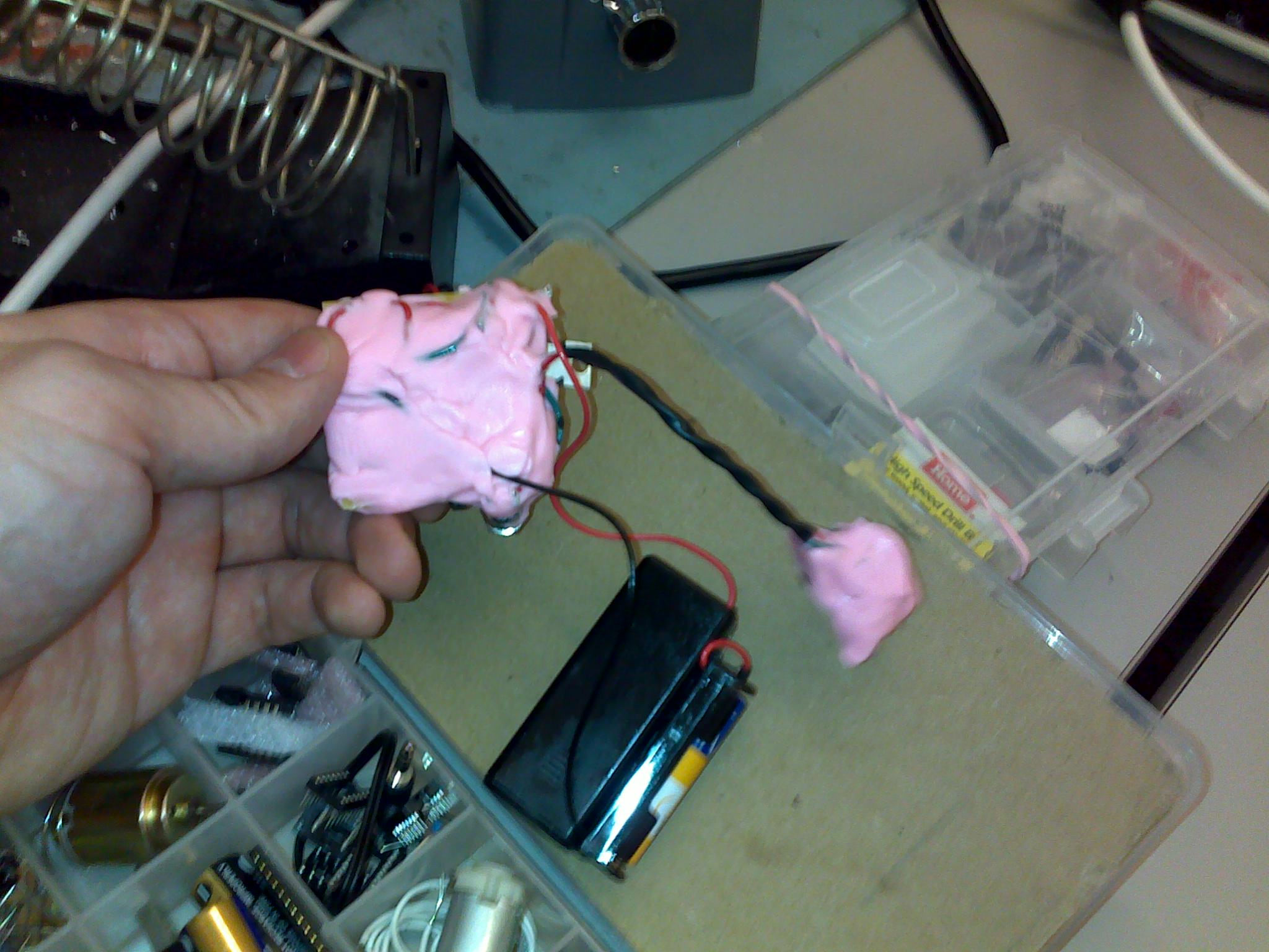 Also, with the use of some Silicone Singles (C), courtesy of WestOne (www.westone.com) I was able to make some custom-fitted finger pointers with the IR LED built right into them. These are little packages of a silicone putty (two types actually), that you can roll together in your hands like dough. Once you’ve combined them, you have about 5 minutes to form your shape, and it then hardens permanently. Fantastic stuff! Now you just need a Darth Vader or Iron Man novelty glove, 4 IR LEDs (a single WiiMote can track up to 4 IR sources at once), and you have one spiffy looking multi-touch enabled input device.